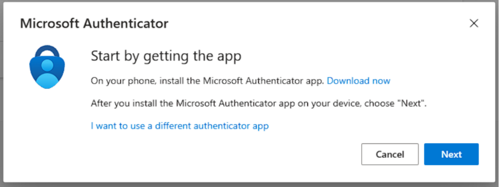 Note: You can opt to use a different authenticator app if you have one available by selecting the “I want to use a different authenticator app”.